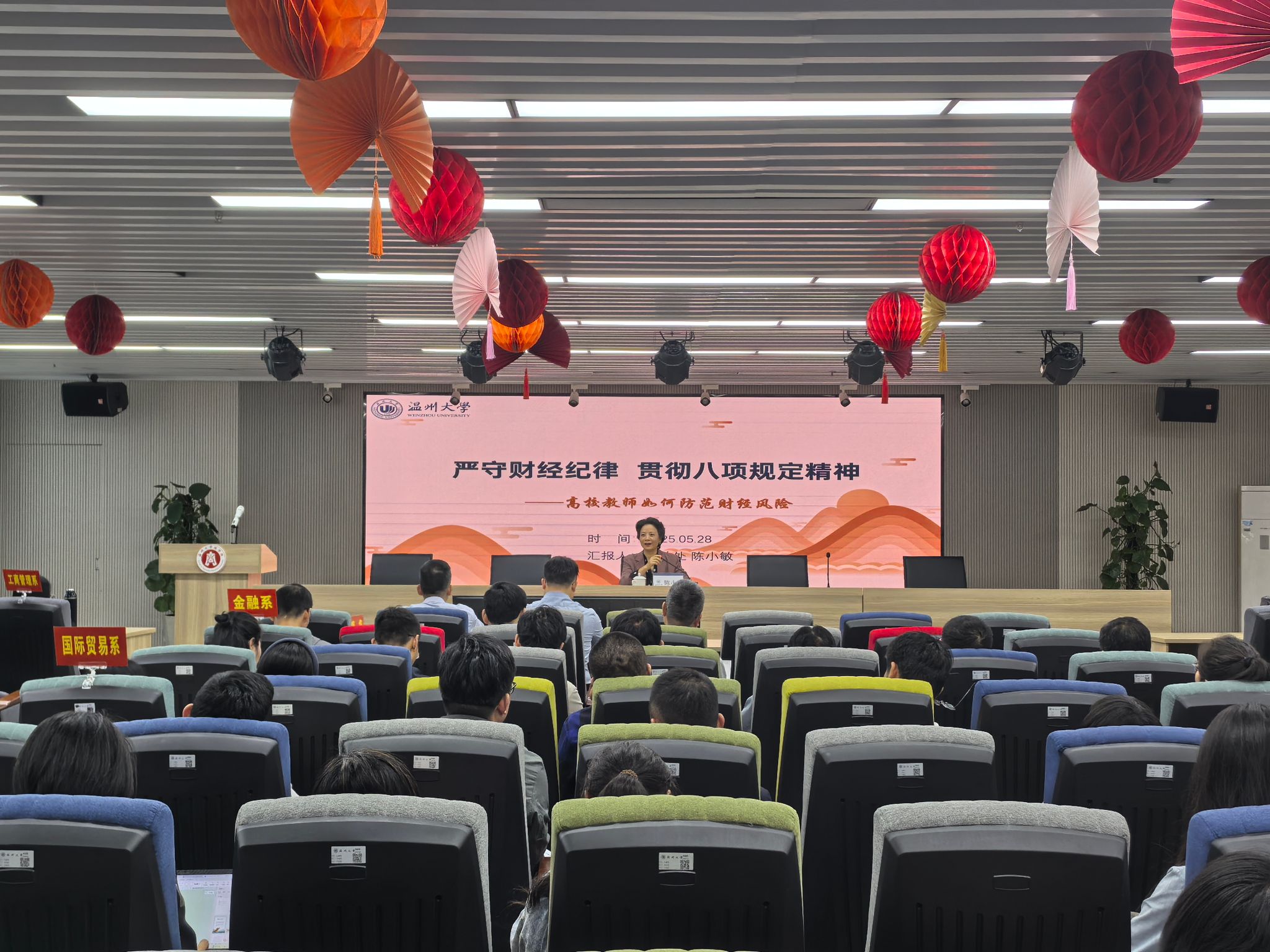 学院邀请温州大学审计处处长陈小敏作《严守财经纪律 贯彻八项规定精神——高校教师如何防范财经风险》专题讲座。陈小敏处长以深入浅出的方式,结合高校实际,系统解读中央八项规定精神内核与财经纪律要求,通过典型案例剖析常见风险点,精准总结出科研经费使用的“负面清单”,并基于“合法、合规、真实、相关”原则,提炼出“四位一体”的风险自查体系,有效提升了教职工的财经风险防范意识和合规操作能力。