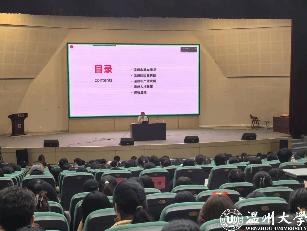 特别开展了一场别开生面的形势与政策课程。此次课程由学院党委副书记曾蓓蕾主讲,围绕温州的景色、精神文化、人才政策等多个维度展开,为同学们带来了一场知识与思想碰撞的盛宴。