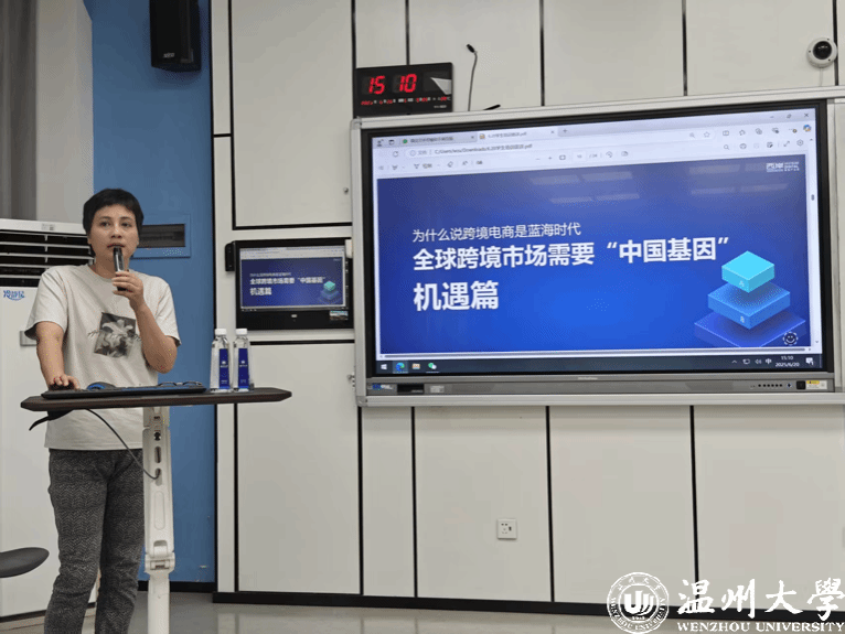 讲座伊始,叶小鹏以温州商贸发展史为切入点,指出温州虽拥有深厚的工贸传统,却曾错过国内电商红利期。如今,跨境电商成为新蓝海,为区域产业升级注入全新动力。他援引数据强调:“全球互联网普及率持续攀升,跨境包裹量激增,为企业转型指明方向,更为学习跨境运营、国际贸易的学子开辟就业新通道——紧跟区域产业升级,职业机遇无限。”