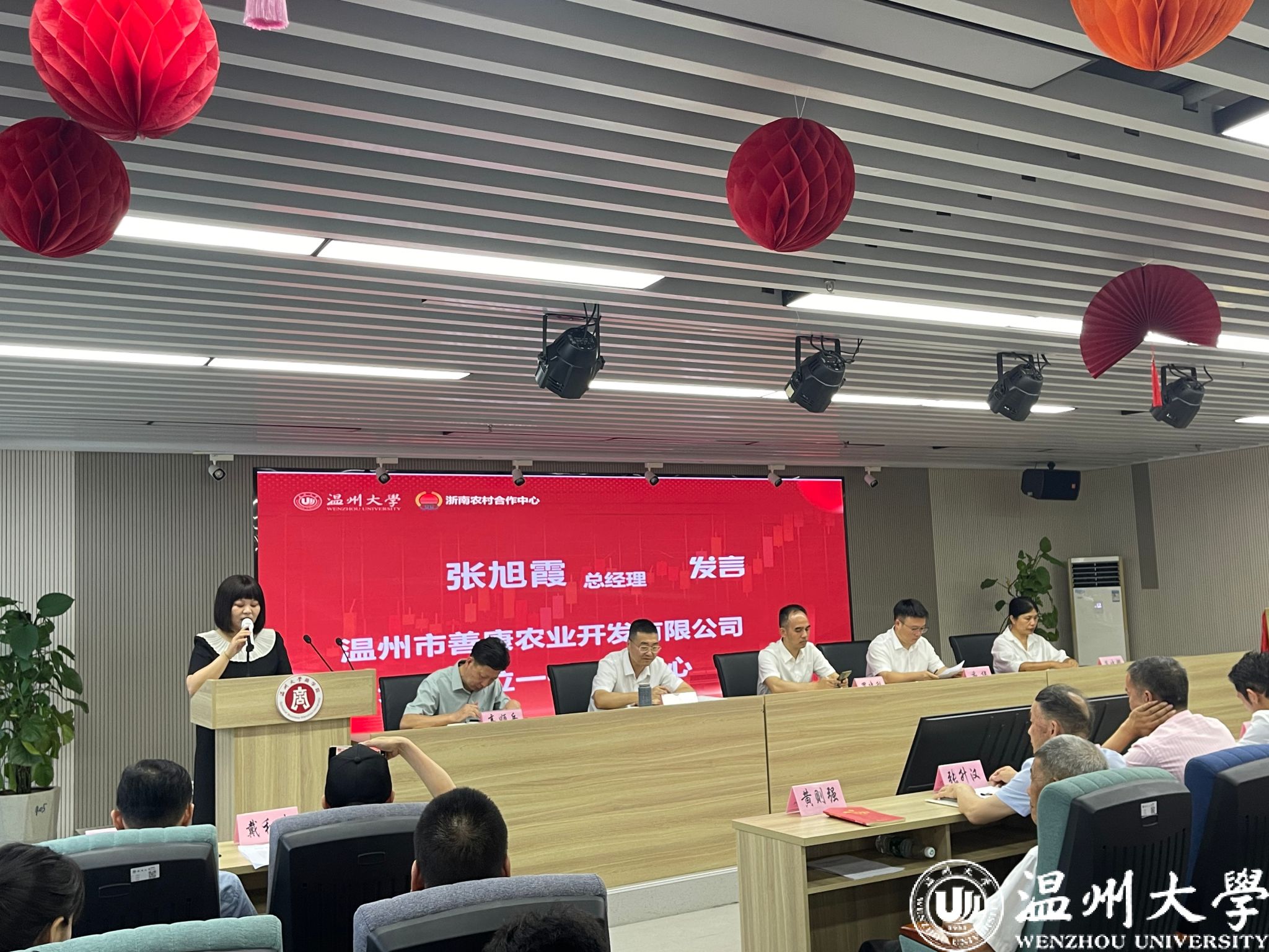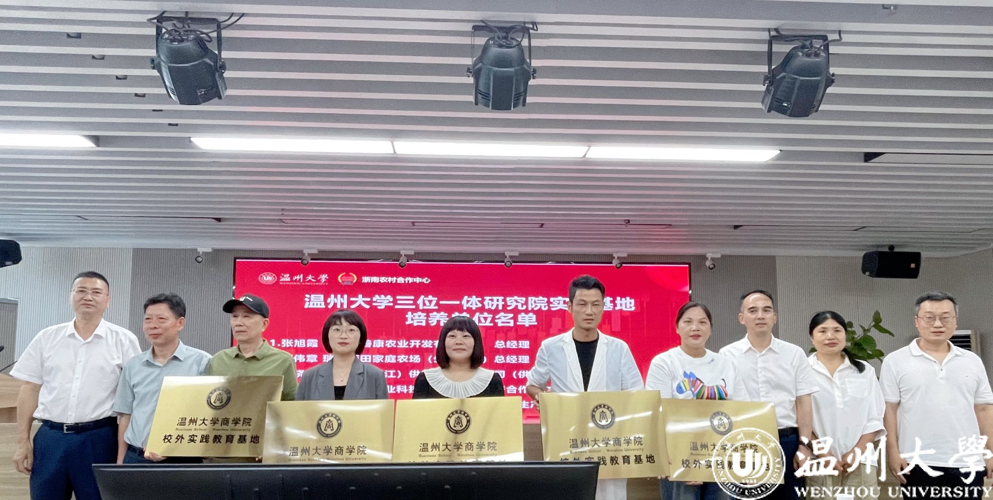 随后,大会公布了浙江九城农业科技有限公司、温州市善康农业开发有限公司等5家单位作为温州大学“三位一体”合作经济研究院的实践培养基地。各基地代表——林福荣总经理、黄则强书记与张旭霞总经理受邀登台分享。他们结合各自单位在推动生产、供销、信用“三位一体”深度融合中的创新模式与显著成效,分享了一系列生动案例。如通过产业链整合优化,提高了农业生产效率和市场竞争力;开展区域性品牌共建,提升了农产品的品牌价值和市场影响力;推动普惠金融服务下沉,解决了农民融资难、融资贵的问题等。这些鲜活的案例充分展现了基层实践的蓬勃活力,也为研究院扎根田野、提炼“温州经验”提供了丰富的素材和坚实的基础。