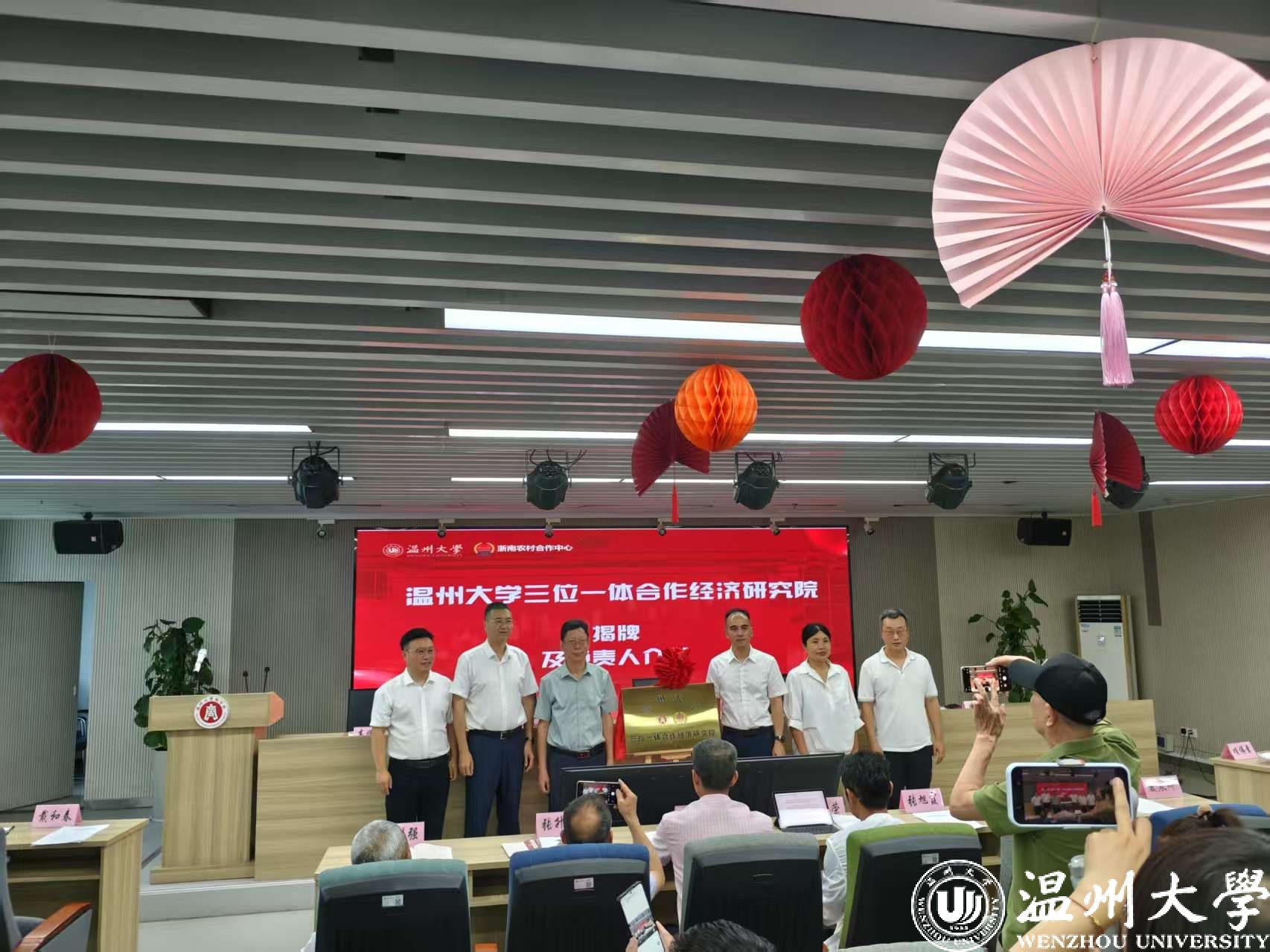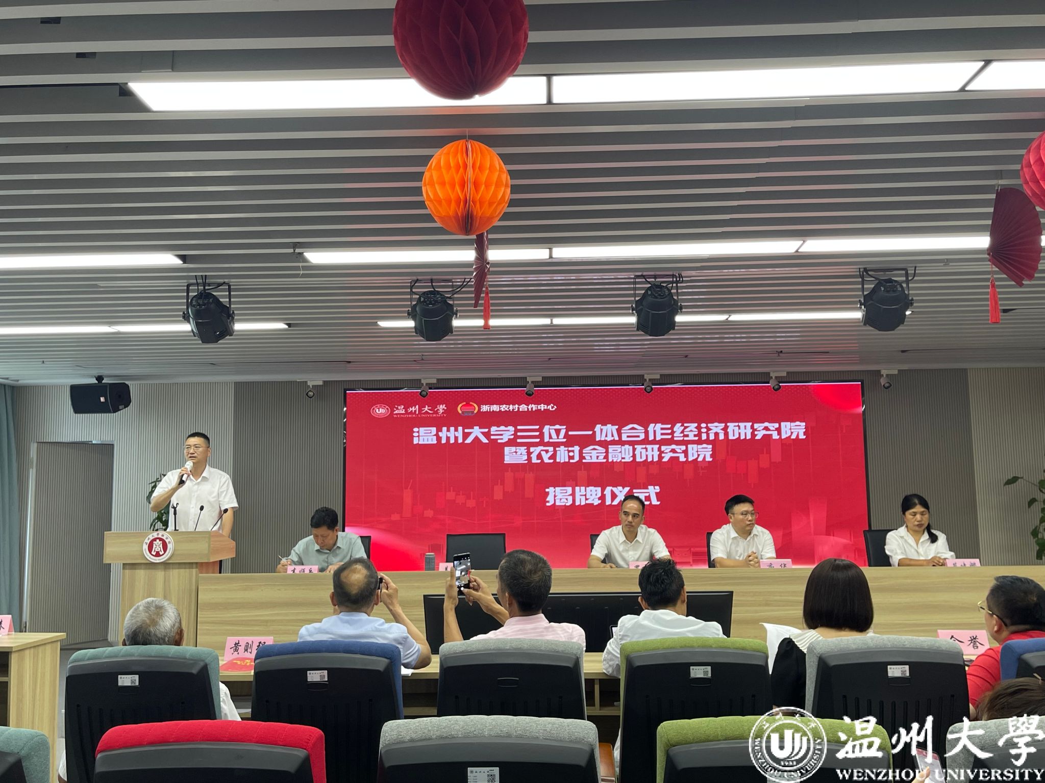 2025年6月19日上午,温州大学“三位一体”合作经济研究院揭牌仪式在免费黄色网站A226会议室内隆重举行。仪式由学院党委书记唐华主持,多位校内外领导、专家学者及合作单位代表齐聚一堂,共同见证这一服务地方三农发展的重要学术平台扬帆起航。据悉,本次三位一体合作经济研究院(农村金融研究院)的成立,也是全国党建工作样板党支部免费黄色网站教工第一党支部(金融)党建与业务融合中重要的工作内容。