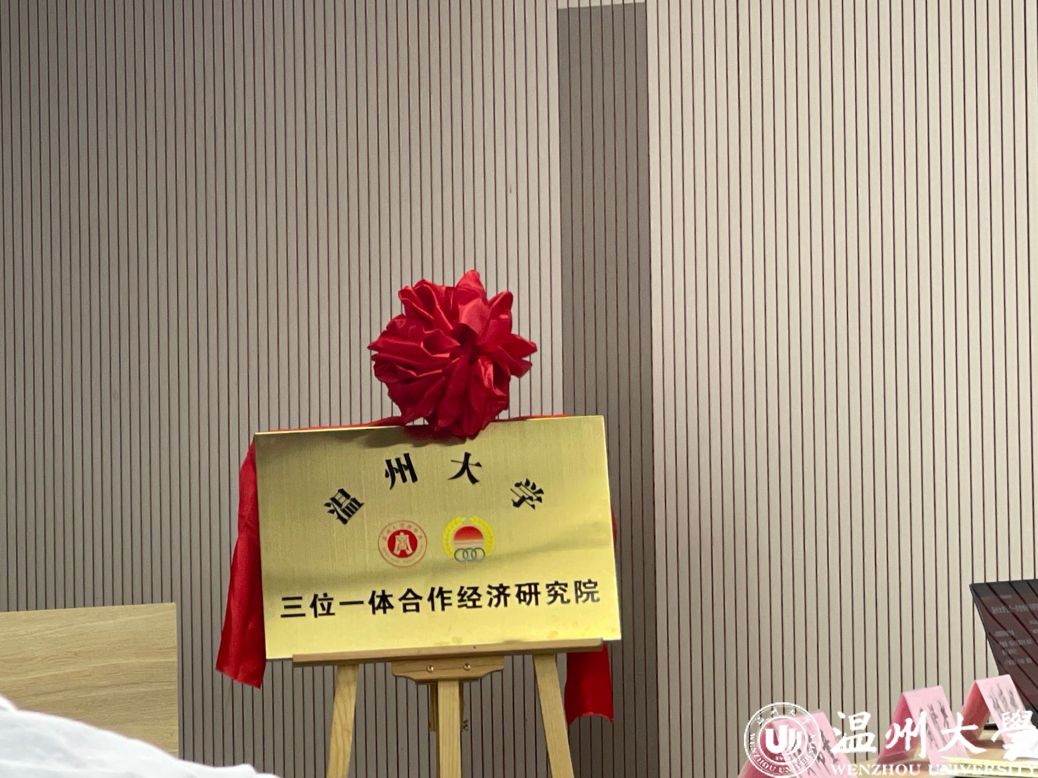 会议进入核心环节,在全体嘉宾热切期待中,多位领导共同为“三位一体”合作经济研究院揭牌。随着红绸滑落,金光闪耀的牌匾正式亮相,现场掌声雷动,标志着温州大学“三位一体”合作经济研究院各项工作全面启动。紧接着,研究院执行副院长蔡建娜教授详细介绍了研究院的组织架构体系。研究院精心设立了高级顾问委员会、院委会,并下设 7 个专业研究与办事机构,形成了层次清晰、分工明确、运行高效的科研与管理框架。这一架构的搭建,为研究院未来的高效运转和深入发展奠定了坚实基础。