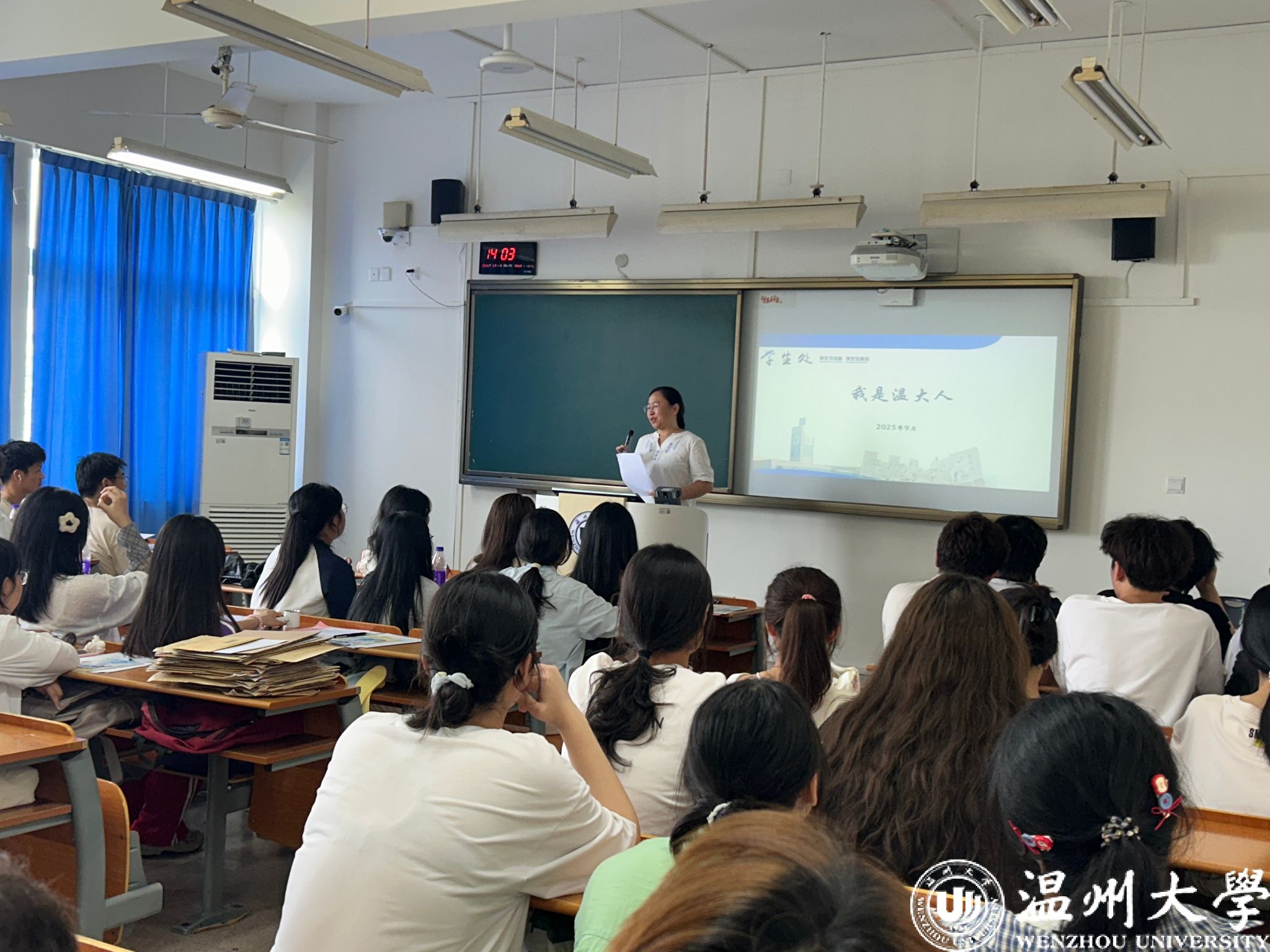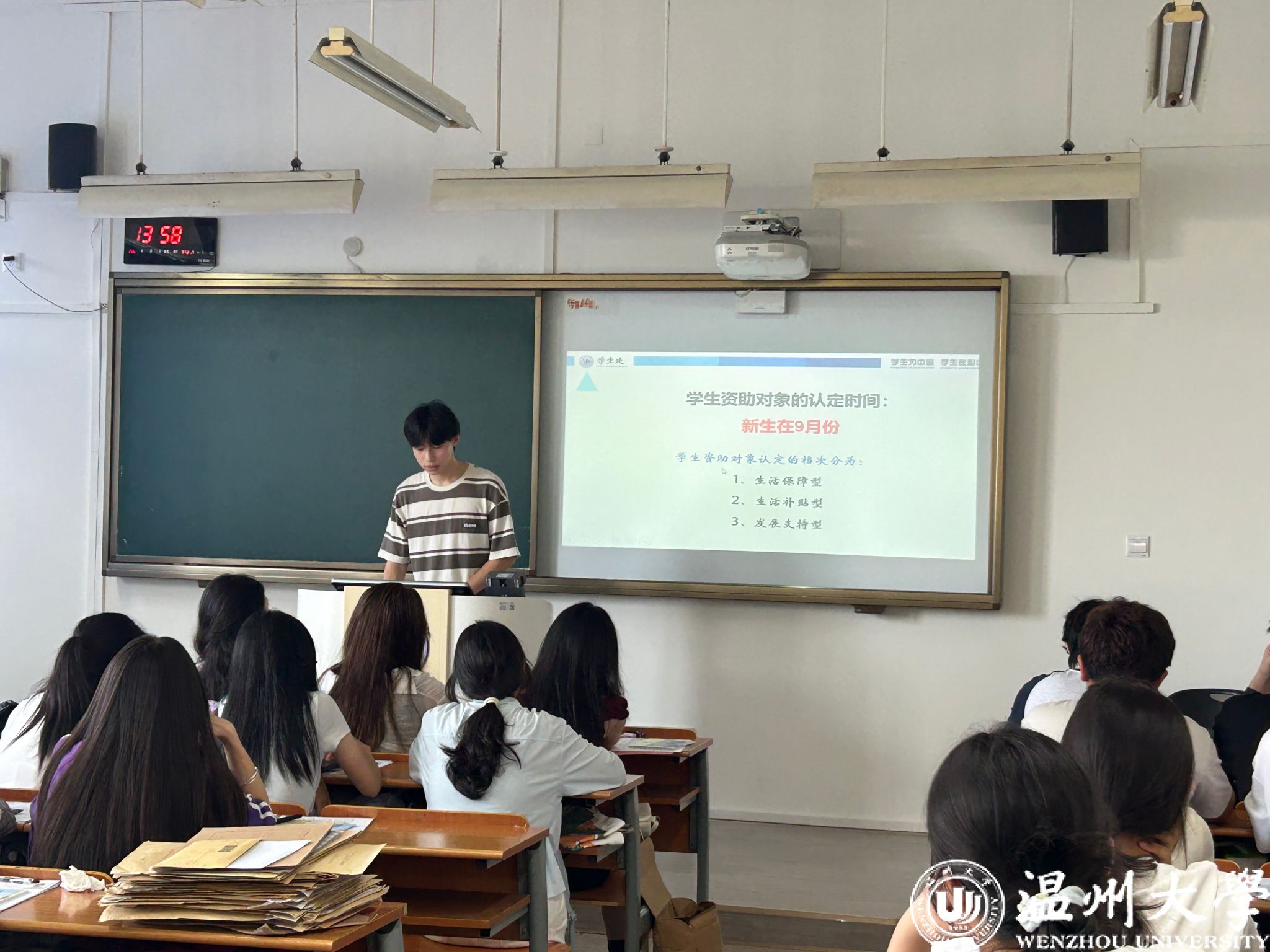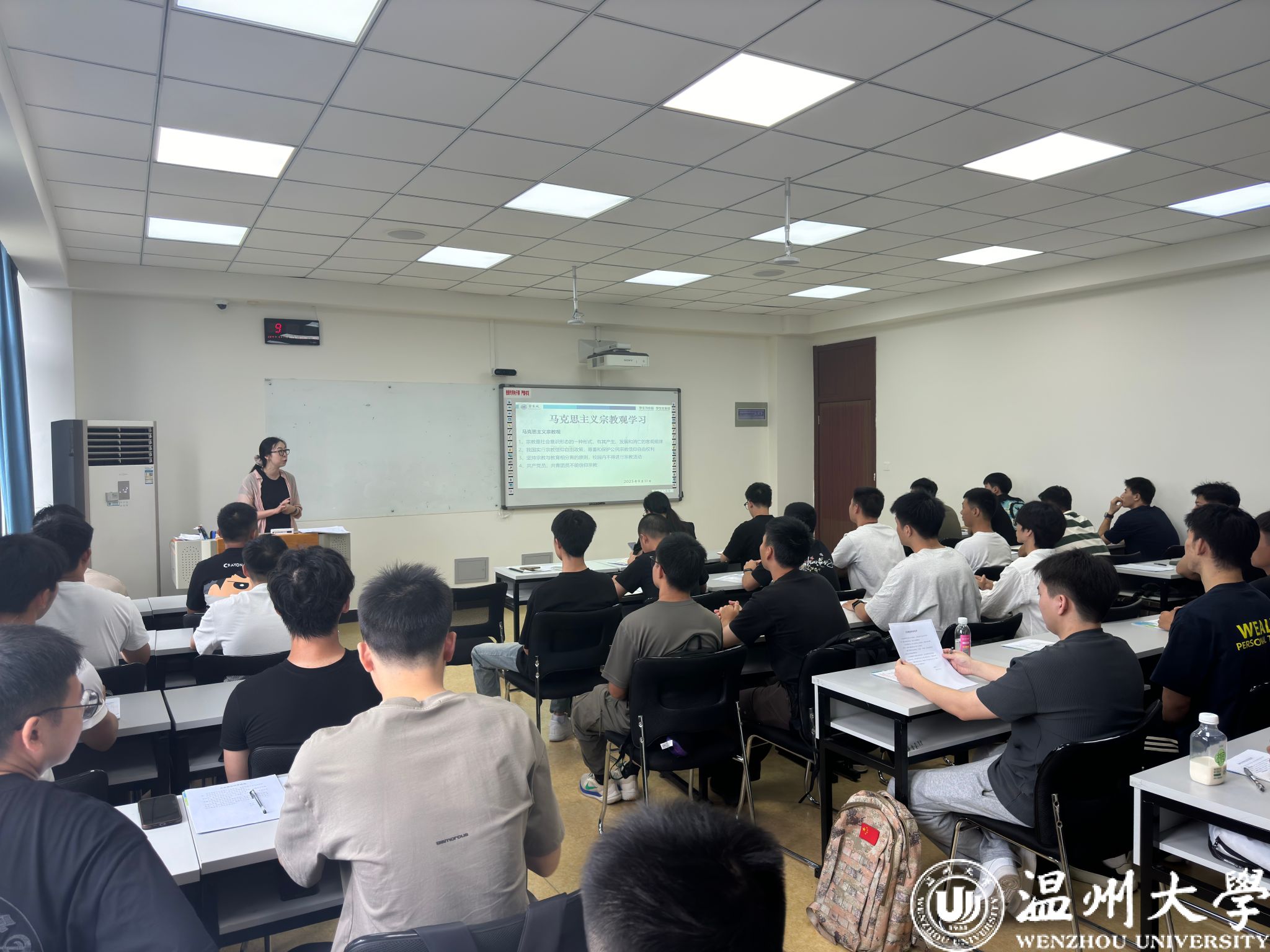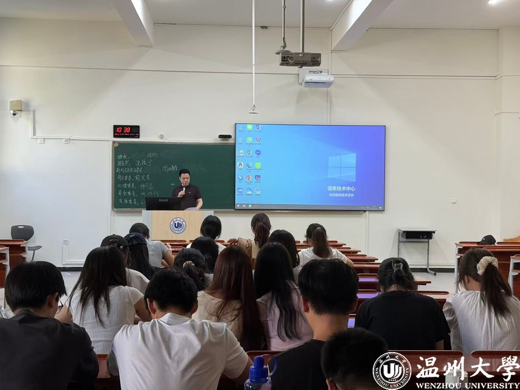 接着,进入事项解读环节。班主任们聚焦马克思主义宗教观,结合法规与校园实际,明确“宗教与教育相分离”原则;通过“校园贷”“刷单诈骗”等案例,讲解诈骗防范要点,提醒新生守护财产安全。班助解读《学生手册》中纪律处分条例、违规大功率电器使用规定;介绍必须关注的校园公众号、宿舍报修途径、校园通知查询方法、培养方案查询路径、幸福工坊地址,以及校院学生会、学生社团情况。