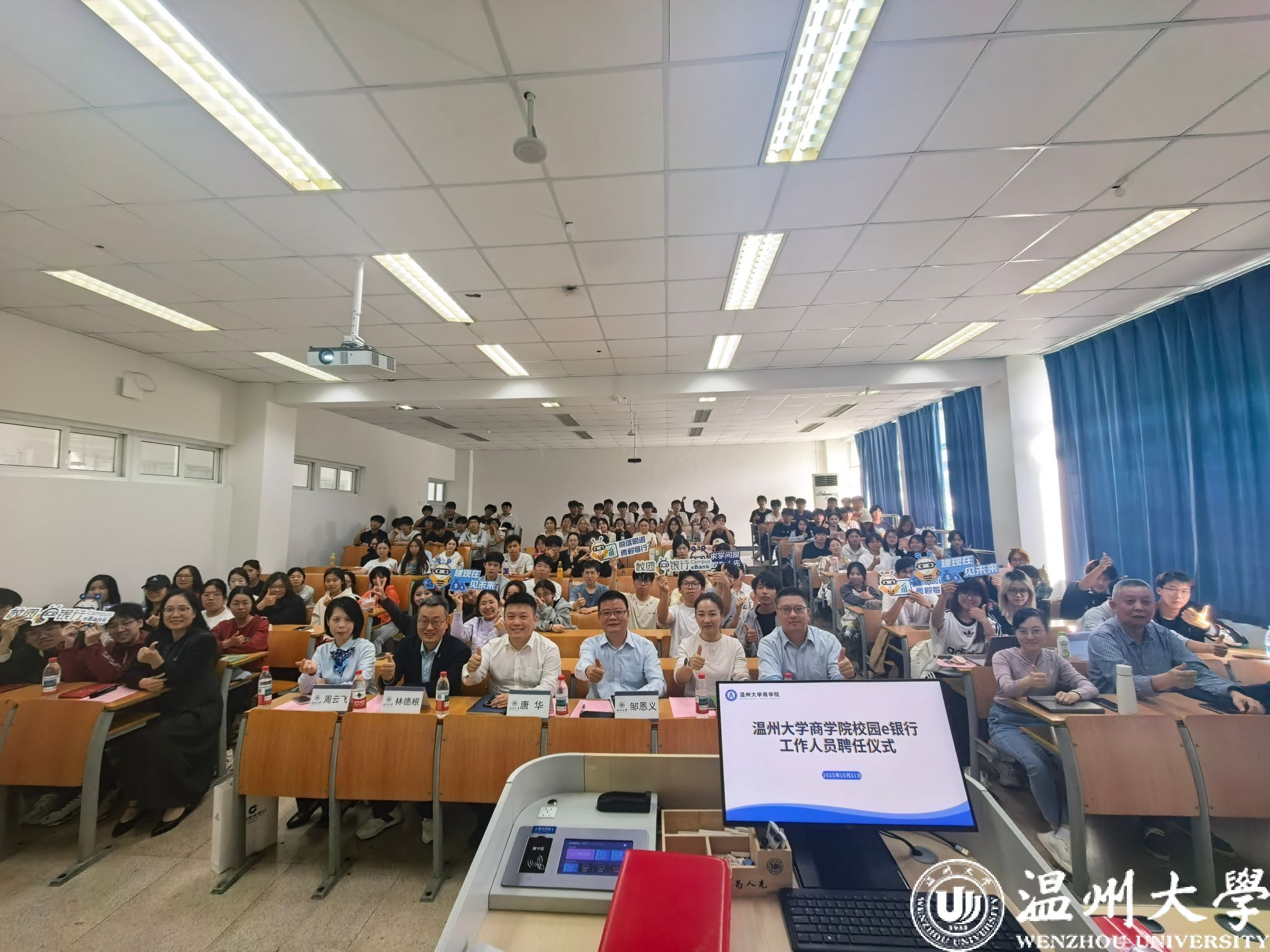 校园e银行工作人员聘任仪式在北2-411教室举行。本次仪式别开生面地融入2025级金融工程专业导论课堂,全体新生现场观摩。中国建设银行温州市分行网络金融部总经理邹恩义、免费黄色网站党委书记唐华等校企双方领导出席活动。