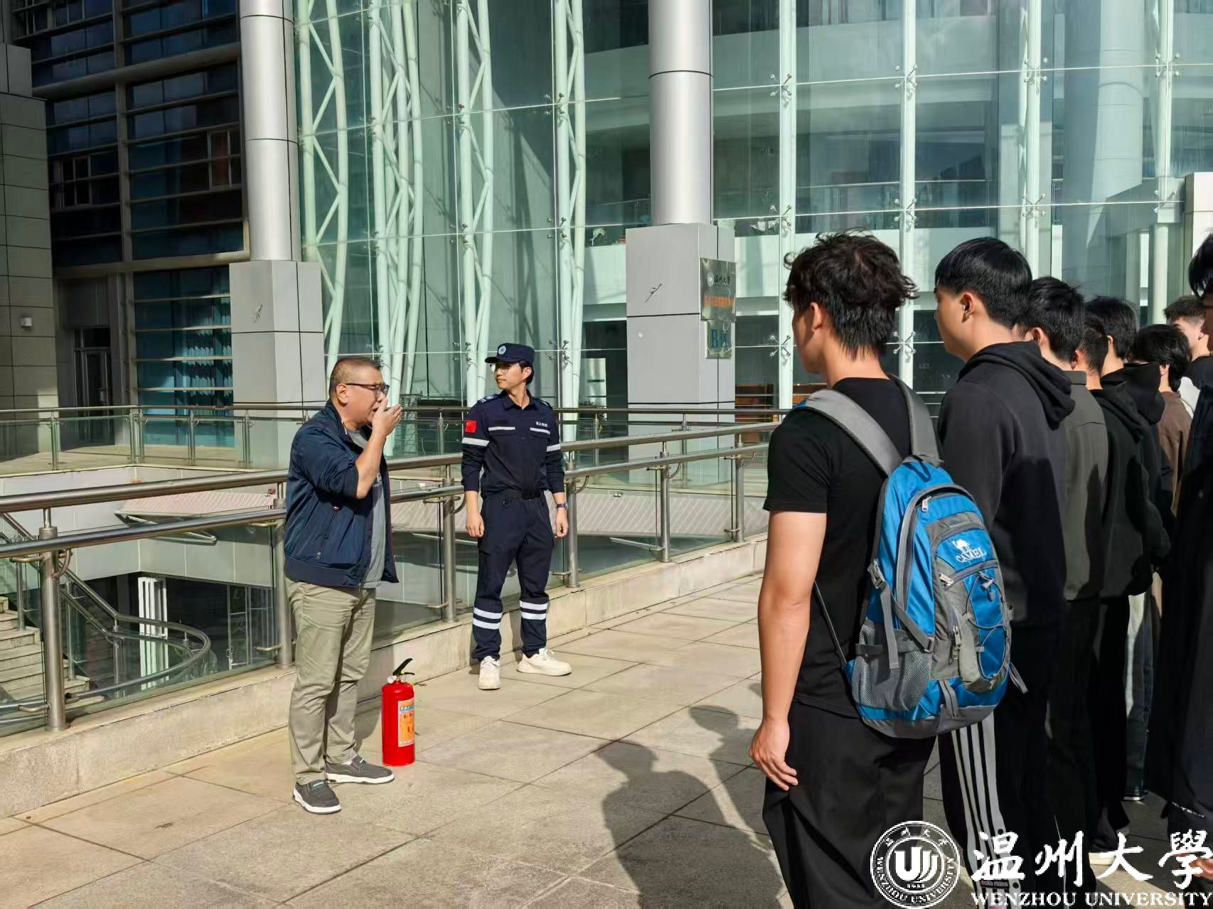 疏散环节结束后,活动进入灭火器实操培训阶段。学校保卫处消防专员结合典型火灾案例,详细讲解了火灾预防、扑救初起火灾的方法以及不同类型灭火器的使用场景,并现场演示了“提、拔、握、压”四步操作法。在专业人员的指导下,师生分批进行灭火实操,亲身体验灭火过程,有效掌握了消防器材的正确使用方法。
