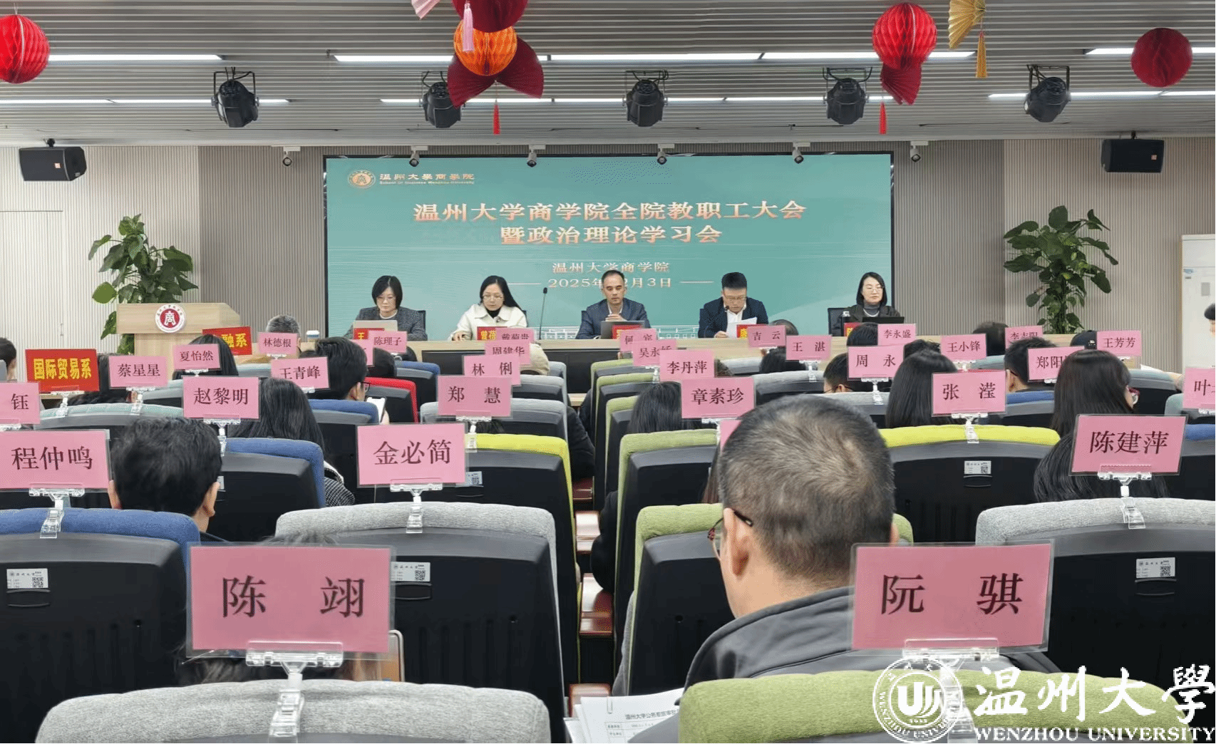 2025年12月3日下午,免费黄色网站在商院楼A226仲辉商道讲堂举行全院教职工大会暨政治理论学习会,会议由学院党委书记唐华主持,学院全体教职工参加。