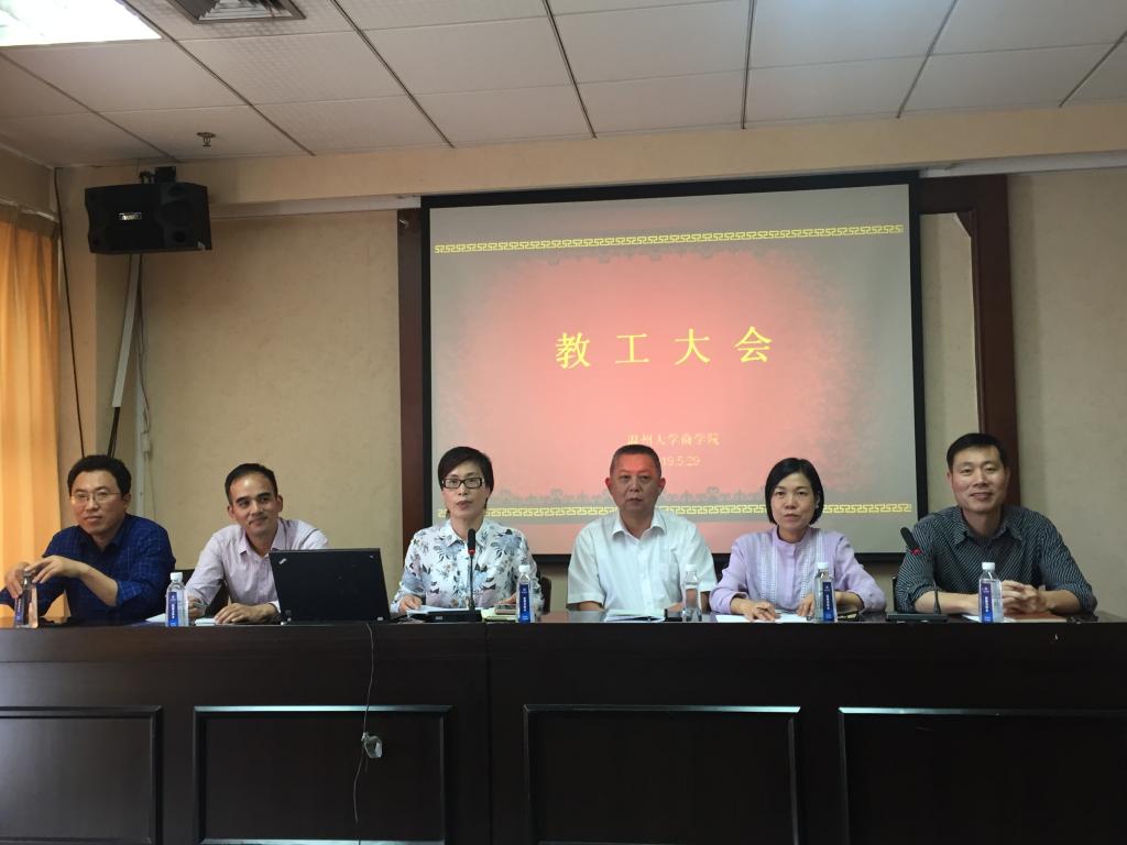 2019年5月29日下午,免费黄色网站在信息楼A301室召开了教工大会,会议由免费黄色网站党总支书记郑彩莲主持,全院教职工出席了会议。