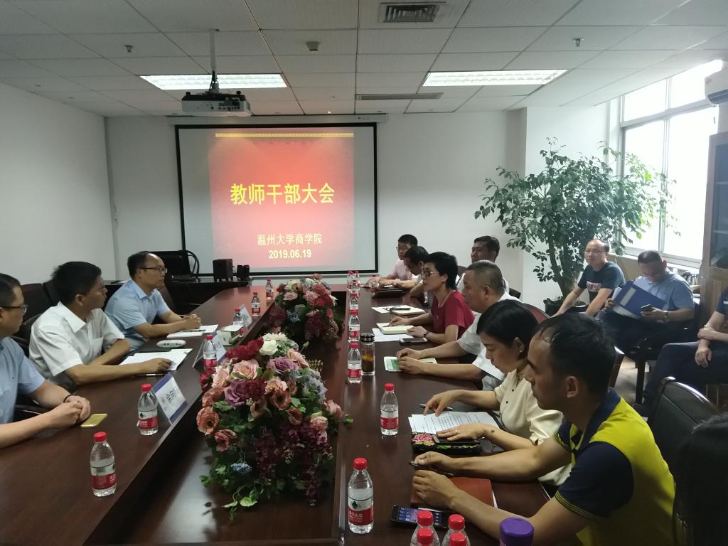 2019年6月19月下午,我院召开教师干部大会,宣布校党委干部任命决定。校党委副书记庄兴忠,学院全体领导、系主任、各党支部书记及科级干部出席了本次大会,会议由院党委书记郑彩莲主持。