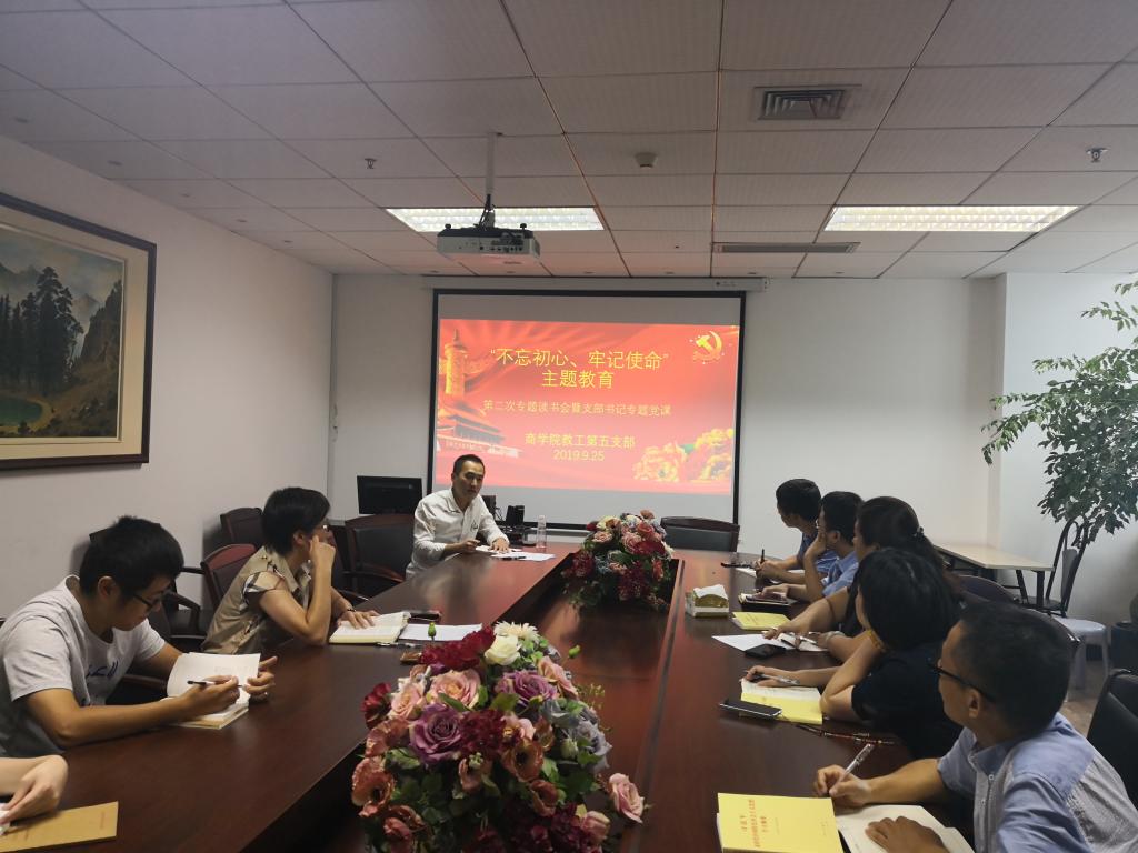 为深入学习“不忘初心、牢记使命”主题教育,认真贯彻中央主题教育精神,免费黄色网站教工第五党支部于9月25日下午在学院A222会议室召开第二次初心读书会和支部书记专题党课,读书会由支部书记黄兴利主持。