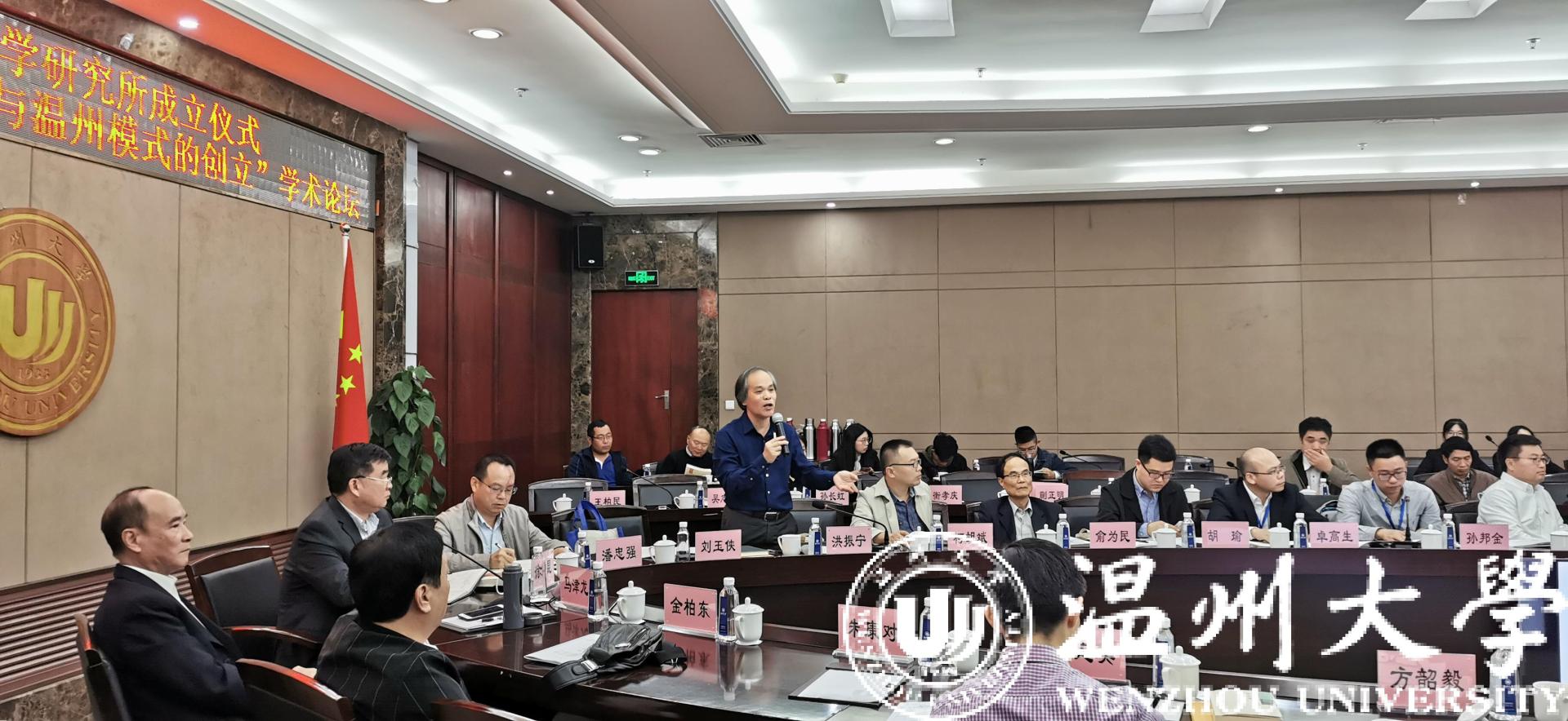成立仪式之后,接着由温州大学温州学副所长孙邦金主持进行了“永嘉学派、地域传统与温州模式的创立”学术论坛。在主旨发言环节,著名学者洪振宁和著名学者马津龙分享了各自的研究心得,很好地回顾总结了永嘉学派的近世命运和温州模式的前世今生。在自由交流环节,专家们畅所欲言,共同探讨温州学的过去、现在和未来,气氛热烈。马克思主义学院院长卓高生做了会议总结。