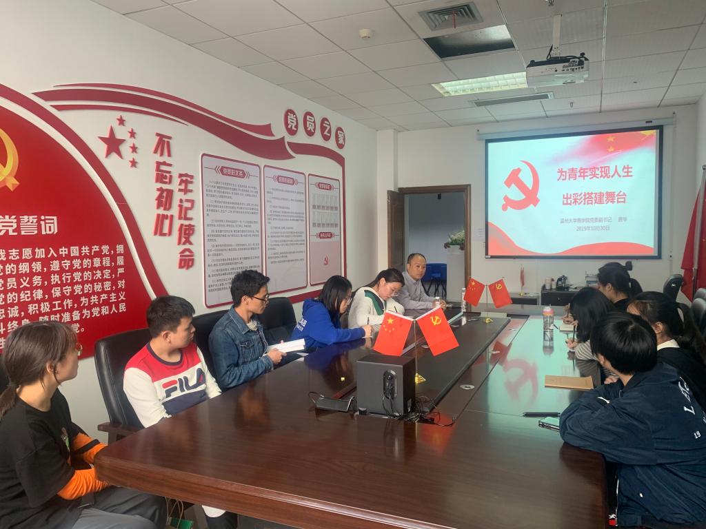 10月30日下午,免费黄色网站党委副书记唐华老师在党员之家主讲《为青年实现人生出彩搭建舞台》的主题党课,全体学生支部支委成员出席并认真学习观摩。