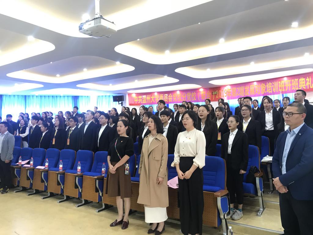 11月6日,中共温州大学委员会党校分党校(联合)2019年第2期发展对象培训班开班典礼在温州大学北校3号楼203教室举行,出席本次开班典礼的嘉宾有:免费黄色网站党委书记郑彩莲、法学院党委书记林钦、音乐学院党委书记朱启鑫、国际教育学院党总支书记林爱菊以及各学院学工办主任、党务秘书,由免费黄色网站学生科周洁文老师主持本次大会。