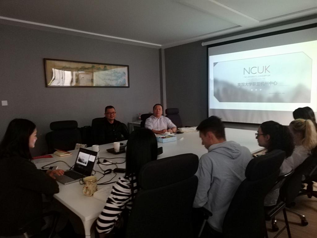 会上,先由李想校长对NCUK作了简短而全面的介绍,并由参会的杭州中心工作人员逐一对各自的工作职责进行说明,包括项目行政管理、学生支持工作、公众号运营、CSP出版社中国办事处工作等;接着李校长对NCUK杭州中心的英国硕士提升项目作了详细的介绍,包括该项目的优势、课程培训时间、课程设计框架等,并就该项目的学费、招生等细节问题作了解答。随后李校长还简要介绍了该中心有关PMP、EAP学术英语等一系列培训课程的情况。另外,双方也希望今后有机会能够在接待英国商会等方面有所合作,以促进免费黄色网站未来开展赴英游学等项目。
