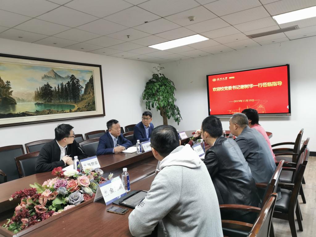 11月19日下午,校党委书记谢树华、党校办主任蔡联群一行莅临免费黄色网站开展调研工作,并召开座谈会面对面听取班子成员专题汇报和建议意见。