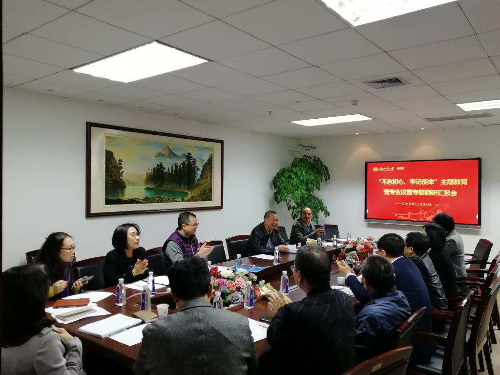 2019年11月28日下午,在A222会议室免费黄色网站召开“不忘初心、牢记使命”主题教育暨专业设置专题调研汇报会,免费黄色网站党委书记郑彩莲、院长胡振华、副院长余向前、副院长罗建利、各专业负责人和系主任、各系督导及相关老师参加了本次会议,会议由教务科科长徐姝老师主持。