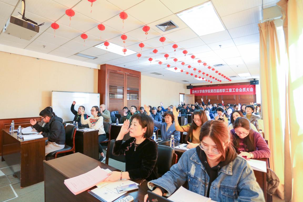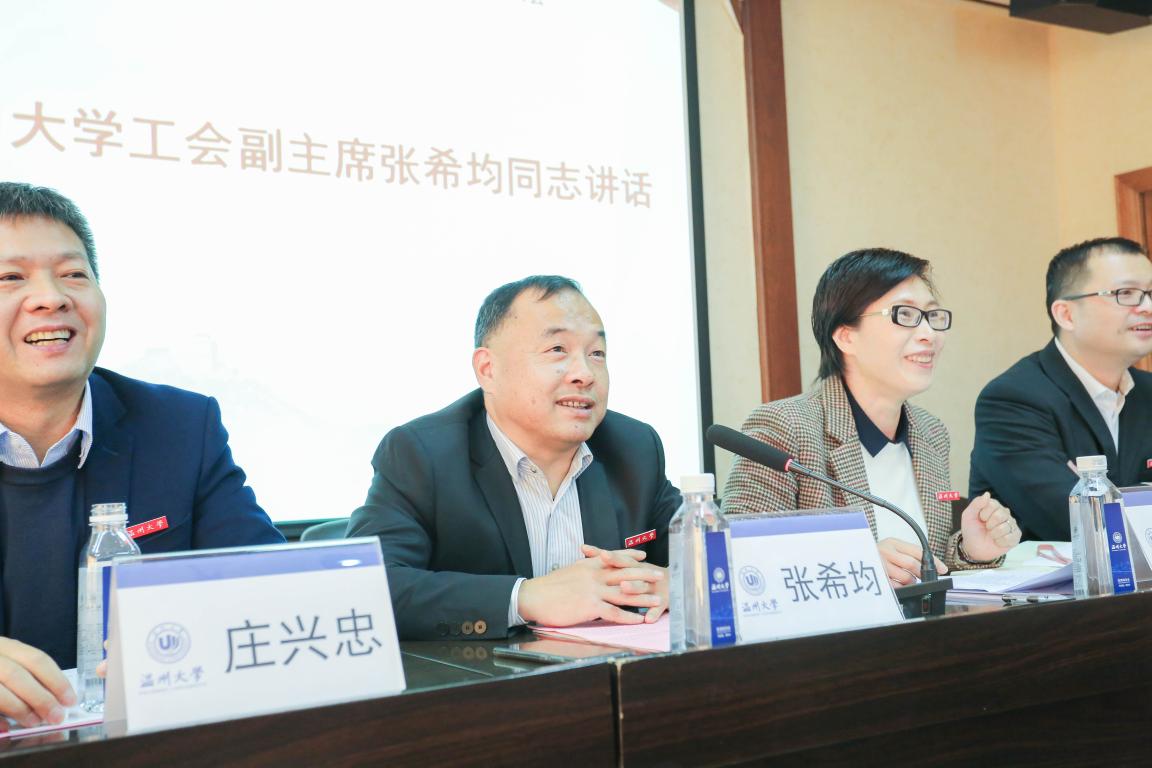2020年1月8日上午,免费黄色网站在北信息楼A301室隆重召开第四届教职工暨工会会员大会第一次会议。温州大学党委委员、副书记庄兴忠、校工会常务副主席张希均应邀出席,会议由学院党委书记郑彩莲主持,免费黄色网站全体教职工参加会议,会议共四项议程。