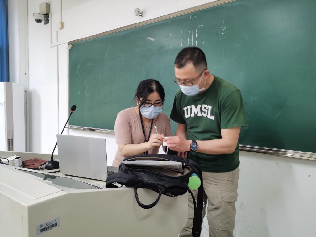 线下开学第一天,学院教学院长余向前老师和教学科长徐姝老师到每个教室巡查了上课情况,从开学第一天来看,老师和学生们上课的精神状态都较好,教学秩序井然。在今天的教学巡查过程中,我们发现学生自觉隔排就坐,并戴好口罩。现场教学环节,因为考虑到部分学生没有返校,免费黄色网站老师自带手提电脑,努力开展线下与线上教学同步教学,在家学生也可以在线观看教学课件和教师现场教学的讲话声音。学院教学科事前也准备了电脑设备转换插件和转换头,为保障疫情下教学提供了质量保障。