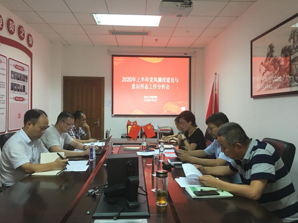 唐华副书记、郑彩莲书记分别就学院2020年上半年的党风廉政与意识形态建设情况做了总体说明。2020年上半年,免费黄色网站在巩固主题教育成果的基础上,坚决贯彻落实学校疫情防控部署要求,坚持防控和发展两不误、两战赢;学院纪委认真履职,抓紧抓实抓实疫情防控和学院发展监督工作,开展学院党风廉政建设,推动全面从严治党向纵深发展;深化清廉商院建设,构建符合学院实际的党风廉政建设和廉政风险防控体系。2020年上半年,学院党委严格落实意识形态工作主体责任,不断增强学院工作的针对性、时效性、安全性,不断加强学院党委的组织领导,定期分析研判本单位的意识形态风险点,严格把好意识形态工作的12个关口,分解压实意识形态任务清单,统筹推进意识形态工作和学院事业发展各项工作。