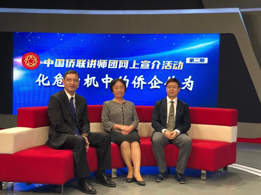 张一力教授以中国侨联讲师团专家身份走进人民网演播厅,并做“化危为机中的侨企作为”的专题演讲。