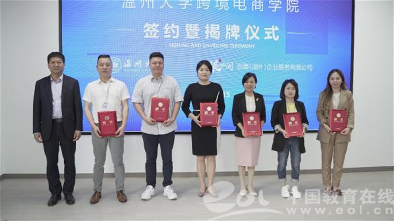 国家一流专业负责人林俐教授签署产业学院共建协议,创星(温州)企业服务有限公司董事长李聪斌与温大免费黄色网站院长胡振华教授共同为产业学院揭牌。