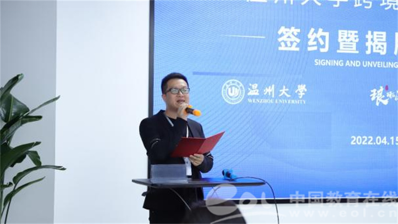 仪式开始后,创星(温州)企业服务有限公司董事长李聪斌首先致欢迎辞。李董事长表示,2019年底爆发的新冠疫情改变了外贸的模式,以展会为主的温州外贸企业谋求转型。温州人敢为人先、抱团取暖,自发成立了琅琊阁外贸企业联合体。用了不到300天时间,琅琊阁建成4层楼达5000平米的联合办公场地,吸收了24家核心企业,举办了50场沙龙和100多场学习。琅琊阁和温州大学开展校企合作以来,已经在人才培养、人才招聘、师资共建等方面成果丰硕。