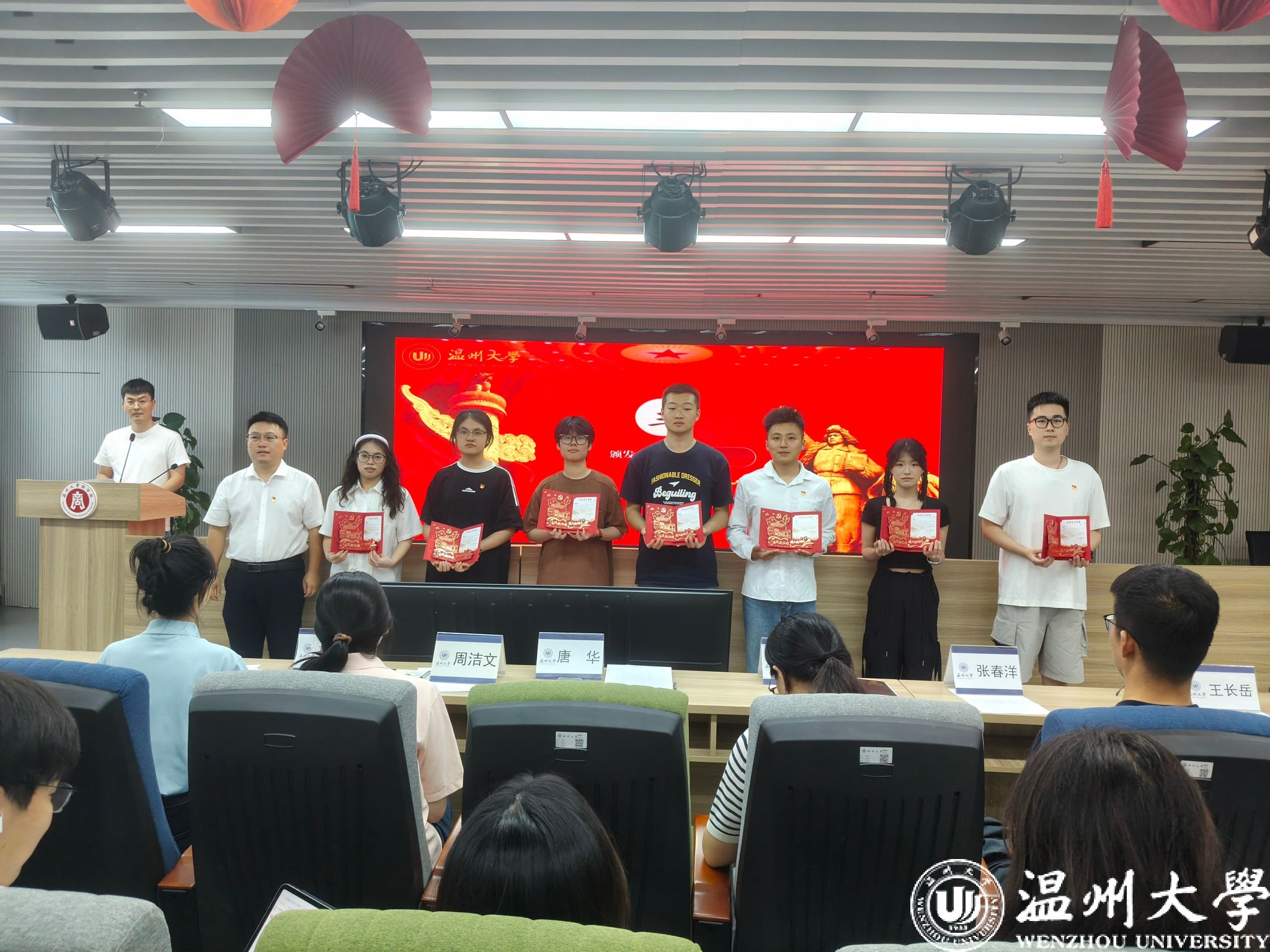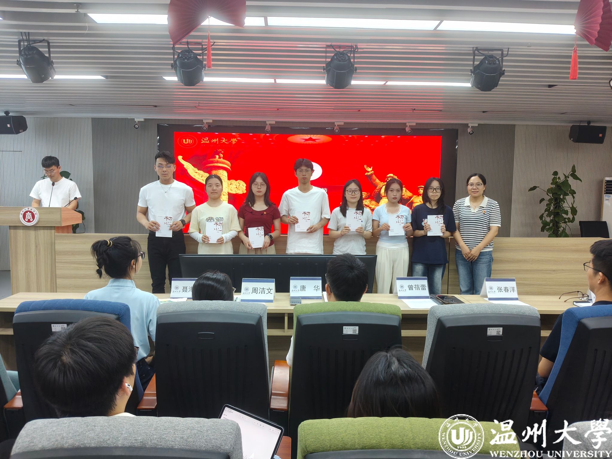 学院党委书记唐华为毕业生党员逐一颁发了饱含组织深情的“政治生日”贺卡。一张张贺卡,承载着党组织对毕业生党员成长的见证与殷切祝福。学院党委副书记曾蓓蕾为党员代表依次颁发书籍《初心》,希望《初心》能陪伴毕业生党员们在未来的道路上,不断追寻和坚守初心,汲取奋进的力量。