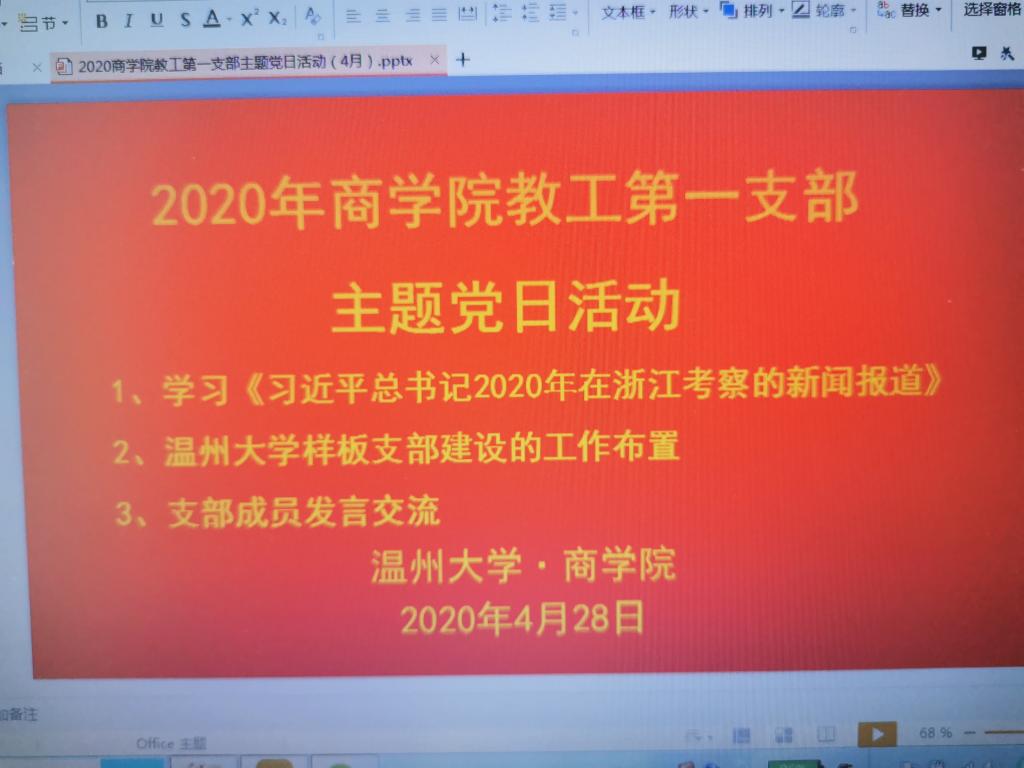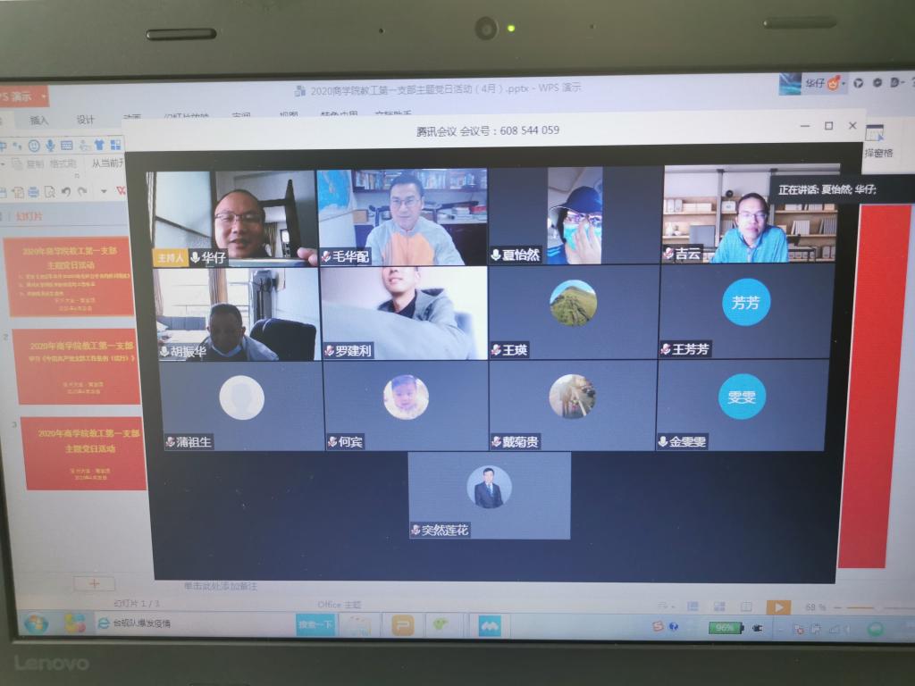2020年4月28日下午,免费黄色网站教工第一党支部召开4月主题党日活动,学习习近平总书记在浙江考察的重要讲话和精神,会议以腾讯会议的形式进行。