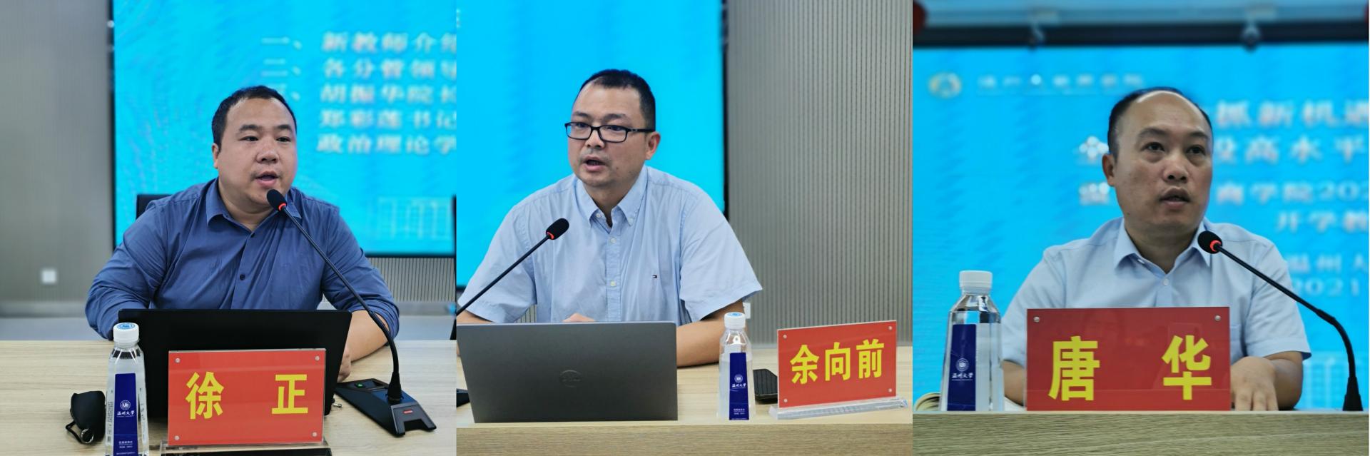 胡振华院长作开学讲话,他带领大家回顾了温州大学三大目标建设情况,免费黄色网站在专业建设、学科建设、教师队伍建设、平台建设、国际化建设、社会服务等方面都上了新台阶,免费黄色网站的发展进入新阶段,他对学院建设各方面提出了新的目标和挑战。他强调学院发展任务依然艰巨繁重,面临的挑战严峻,全体教职工要把“目标”刻在心上、把“执行”视为铁律、把“担当”作为自觉,要有功成不必在我、功成必定有我的精神,聚神聚力把各项工作抓实抓好,闯出自身发展和免费黄色网站发展的新天地!他还对免费黄色网站前不久获得2021年国家社科基金立项资助的张敏老师、金雯雯老师、郑阳阳老师和获得浙江省委书记批示的王露老师与张一力老师表示祝贺,并鼓励其他老师们继续努力,争取取得新突破新成绩。